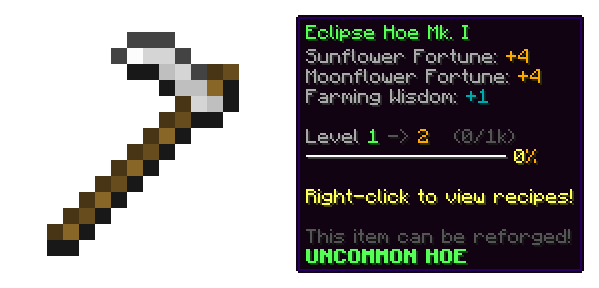 Tools now gain experience everytime you break a crop and once they level up, they gain additional Farming Fortune, Gemstone Slots and increase in rarity.