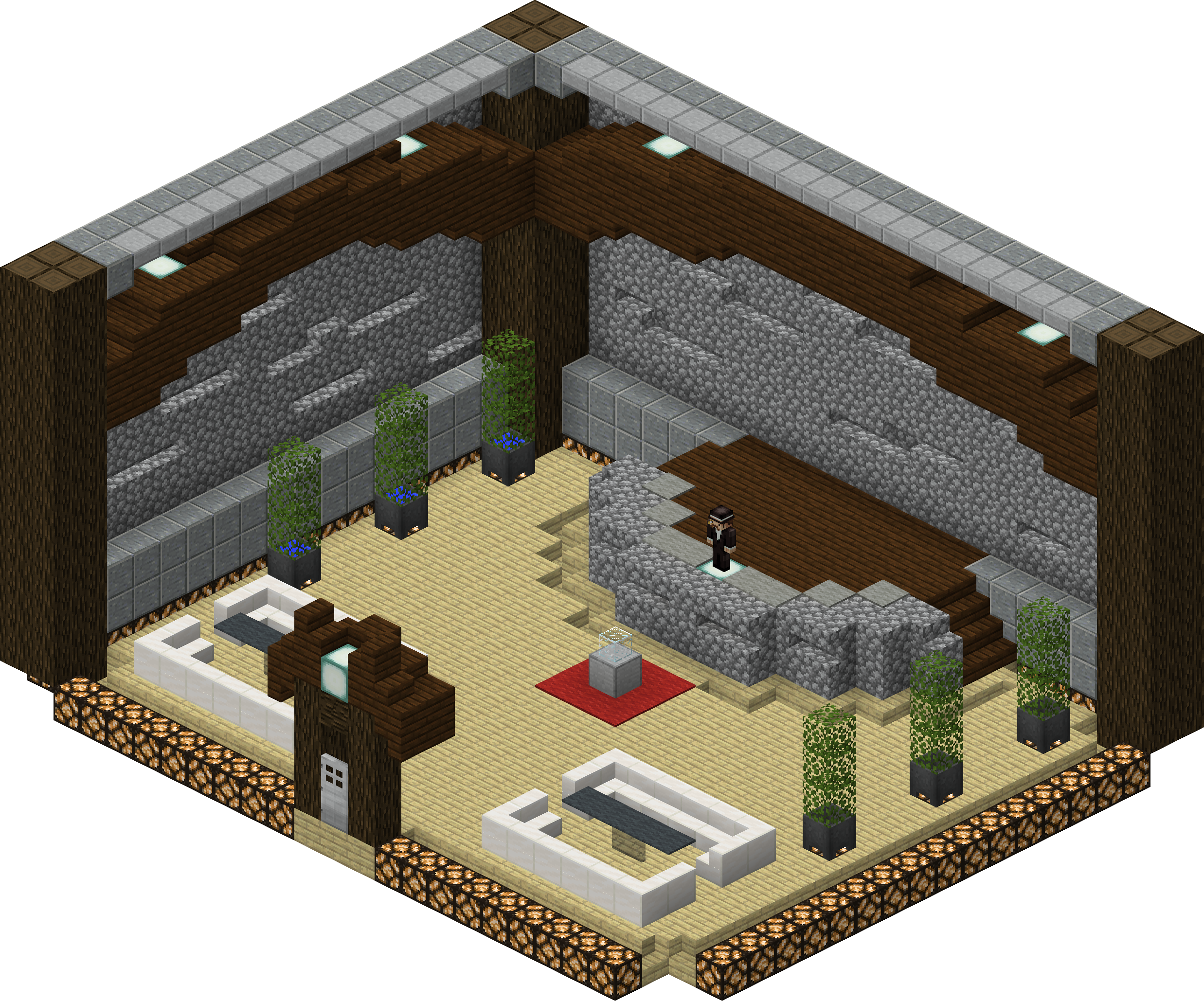 When Sirius appears at the door of the Dark Auction house, players must click on them to enter a queue for the Dark Auction. If the player successfully makes it in, they will be warped to another server into the house. Players can go behind the desk to go down the stairs and enter the Dark Auction room.