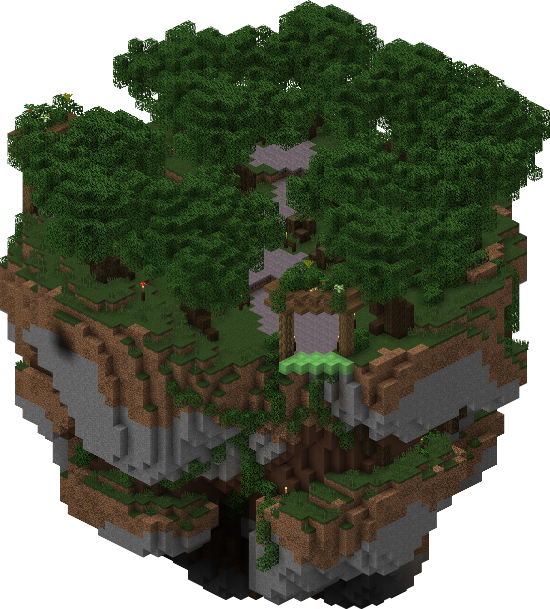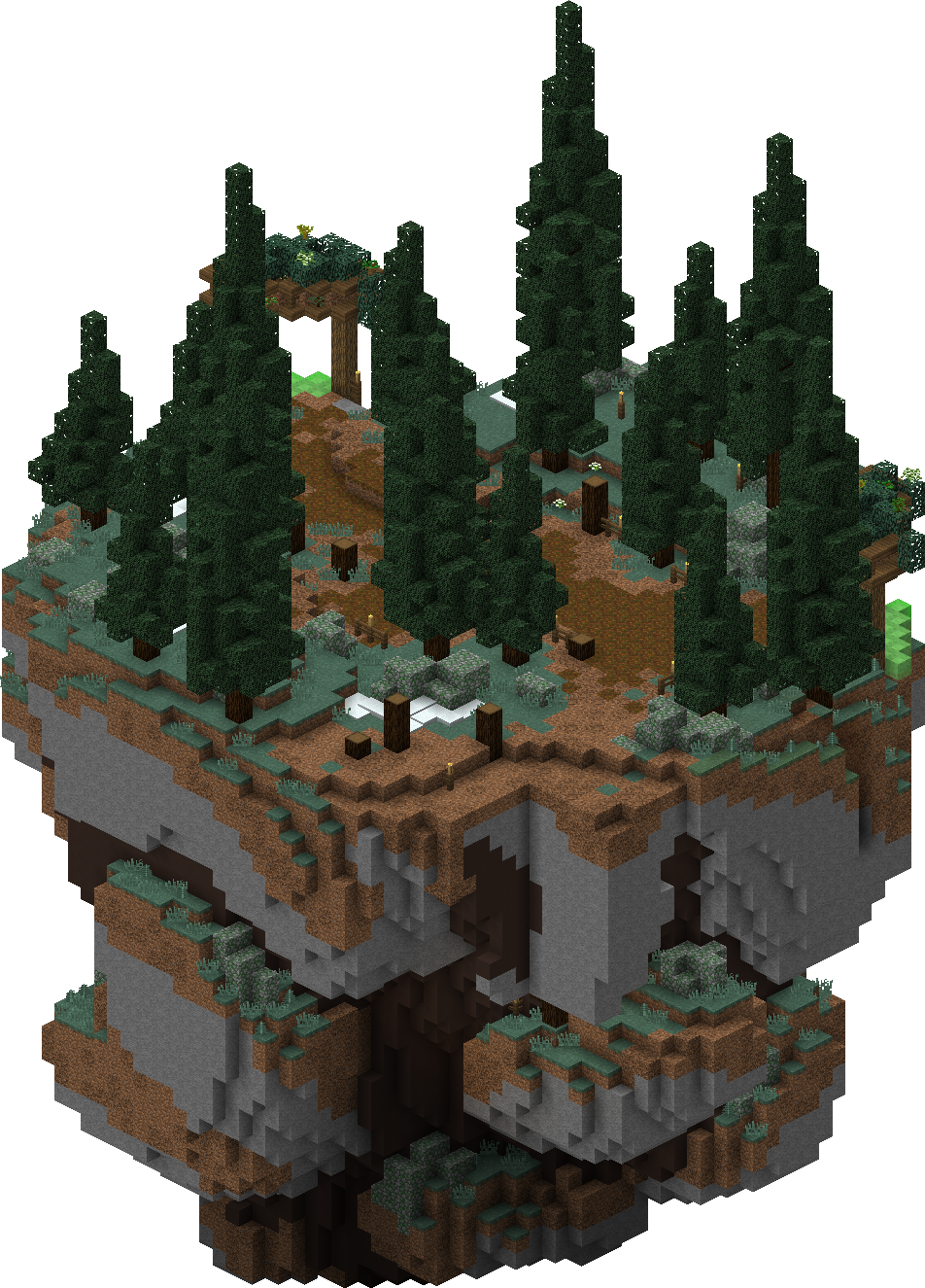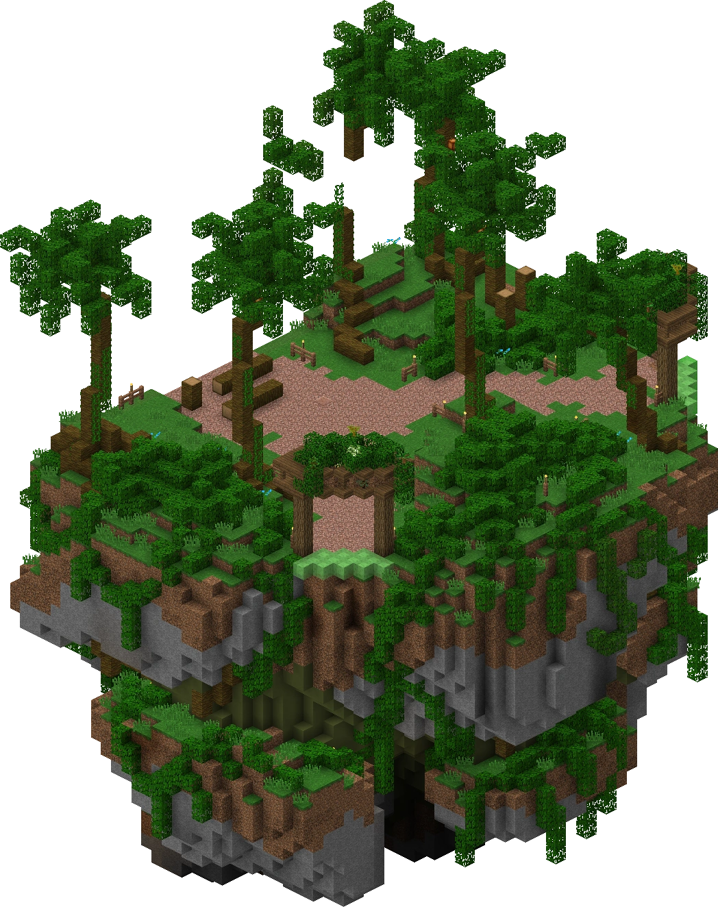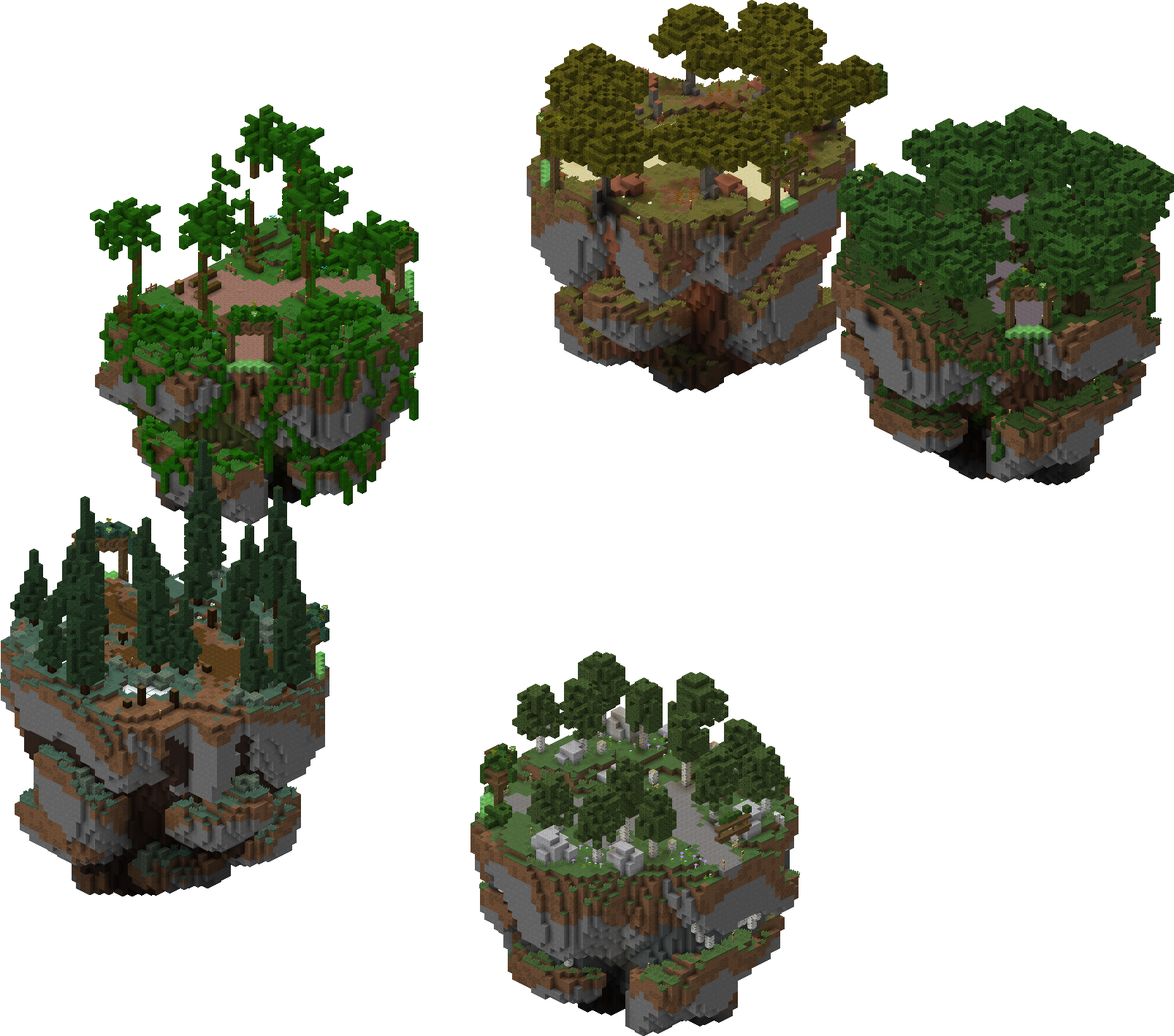 The Floating Islands were a series of islands accessed via the Forest where you could gather multiple types of wood: Birch, Spruce, Jungle, Acacia, and Dark Oak. Leaves and Saplings for these trees are also obtainable here.