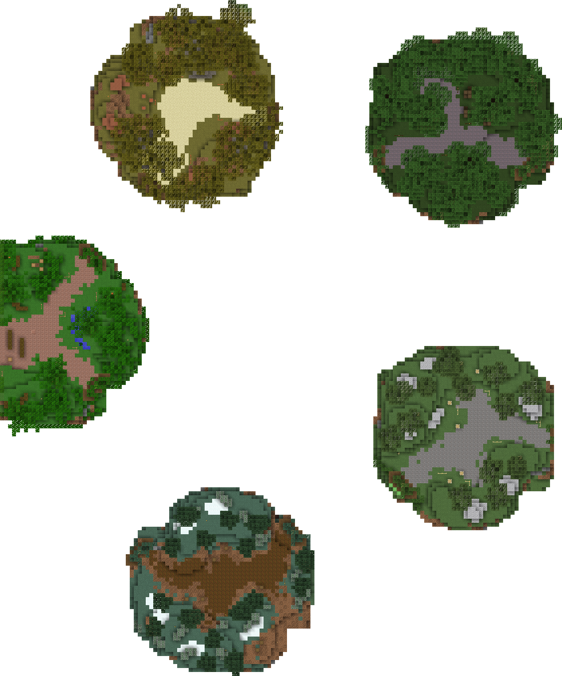 There were five islands total: Birch Park, the Spruce Woods, Jungle Island, the Savanna Woodland, and the Dark Thicket. They followed an ascending and clockwise pattern as the player traveled through them. They each gave a different type of wood. Various types of flowers could also be harvested there.